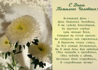 Жизнь прожить – не поле перейти. За вашими плечами – огромный жизненный путь. Из печалей и радостей, из побед и мелких неприятностей. Но все это, и хорошее и плохое, сложилось в удивительную и неповторимую мозаику, имя которой – жизнь, судьба! А она у вас – интересная, насыщенная. Мы поздравляем вас с Днем пожилого человека и желаем, чтобы впереди было еще много и много непройденных дорог. Чтобы они не были в тягость. Чтобы только радость приносили новые встречи. А мы, поколение, воспитанное вами, будем черпать вашу мудрость и опыт. Спасибо вам, родные, за ваши уроки жизни и за ваш оптимизм. Желаем вам крепкого здоровья, бодрости духа, молодости и задора! Пусть будни и праздники принесут вам отдохновение и радость! С праздником!